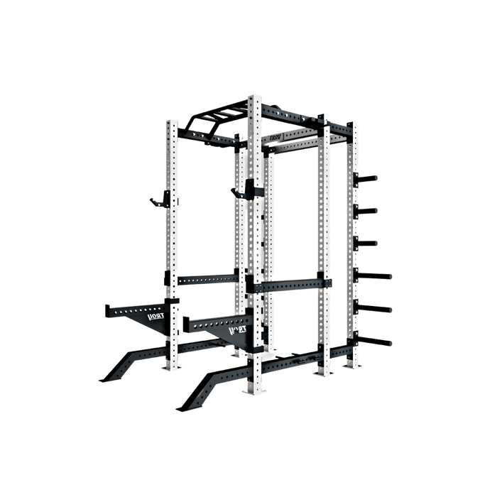 The Troy Fitness Apollo Power Rack is our base power rack system designed with safety and modularity in mind for athletic and commercial facilities. Each column features uniform holes on every side to allow for multiple configurations and attachment setups. The adjustable height safety bars provide versatility in use, whether that is squats, presses, or bodyweight exercises. Featuring 3x3" 11-gauge steel with oversize 1" diameter hardware, this rack is built to stand alone or bolted onto flooring.