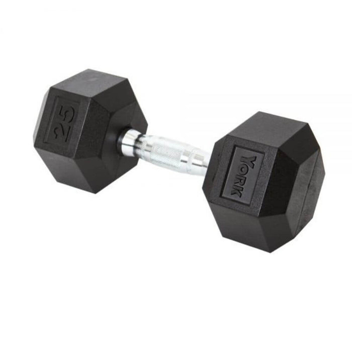 - Due to their hexagonal shape, the York Fitness Rubber Hex Dumbbells do not roll away when placed on the ground